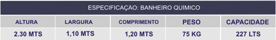Os banheiros químicos são construídos em polietileno de alta densidade com design ergonômico de fácil mobilização.